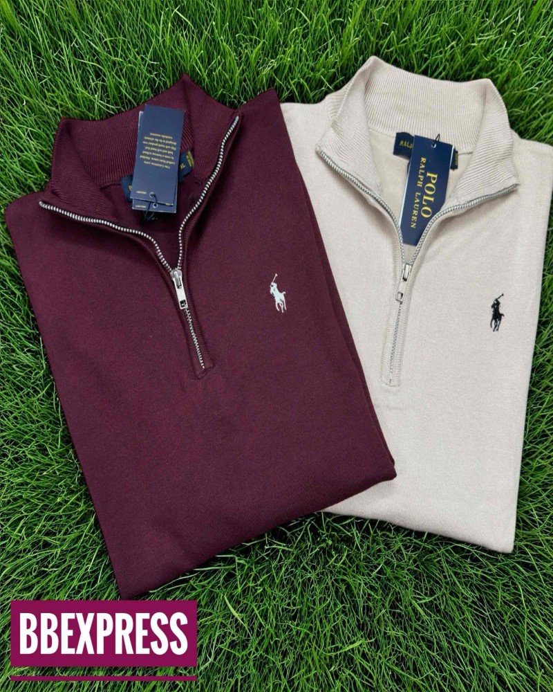 Maroon and beige colour RL full sleeve half zipper